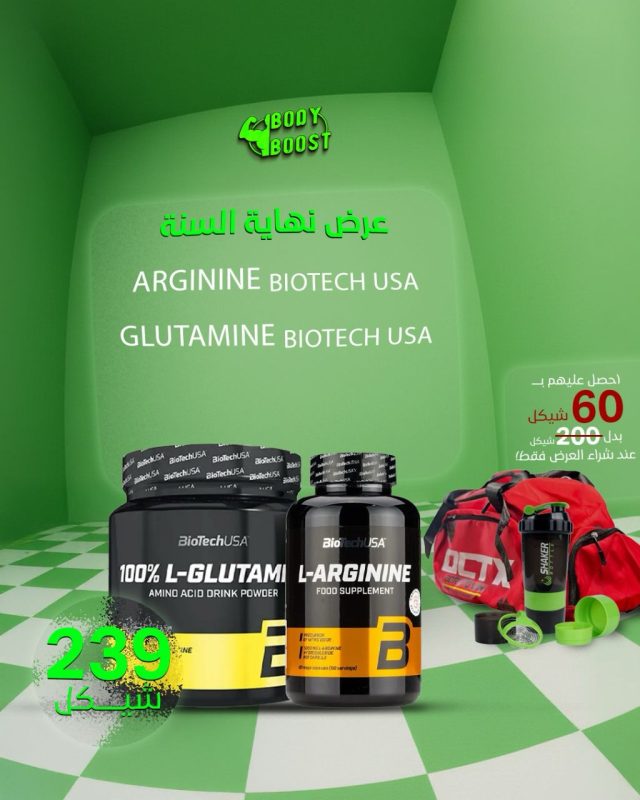 عرض الضخّ والشفاء 239 شيكل – L-Arginine + L-Glutamine (BioTechUSA)