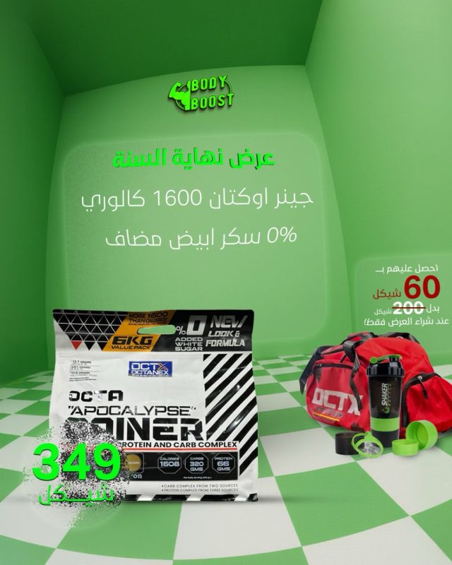 عرض الضخامة العالية 349 شيكل – Octa Gainer 1600 كالوري (0% سكر أبيض مضاف)